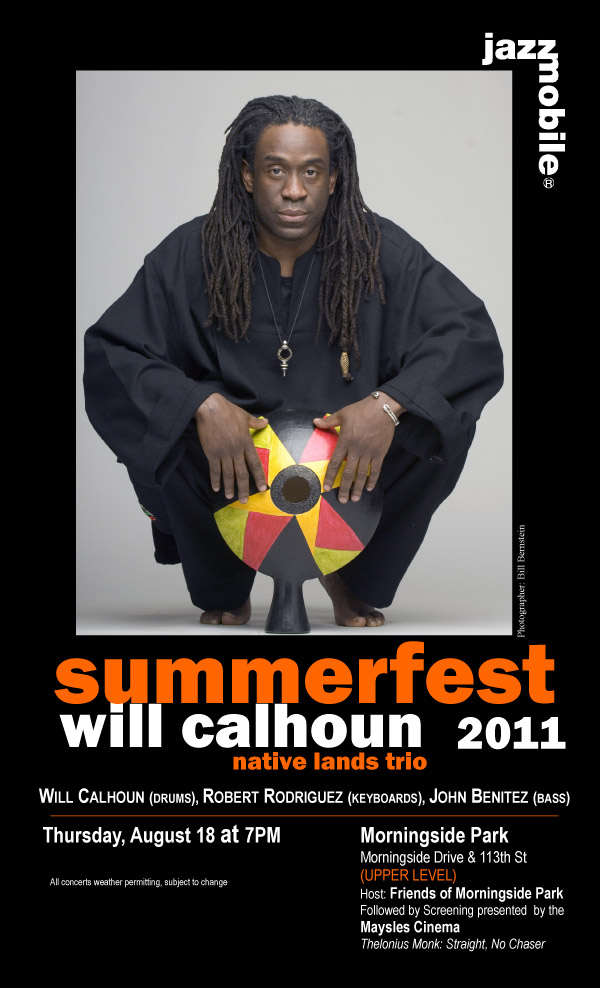 Saturday, September 29, 2011 Will joins other legendary drummers for grand opening of Vic's Drum Shop in Chicago 11am - 6pm Vic's Drum Shop 345 N. Loomis Chicago, IL 60607 Info: (312) 770-1200 Check out the Vic's Drum Shop Website for additional details and to confirm times. Sunday, September 25, 2011 Will Calhoun's Native Lands Trio at The Uptown Tea Series Will Calhoun - Drums, Electronic/Indigenous percussion, and Flutes Earl Travis - Bass Marc Carey - Piano/Keyboard A selection of photos from Will's travels in Africa will also be on display. Dwyer Cultural Center 258 St. Nicholas Avenue (at 123rd Street, entrance on 123rd St.) New York, NY 10027 Info: (212) 222-3060 Set time is 2pm Tickets may be purchased through SmartTix. Check out the Harlem One Stop site for additional details.