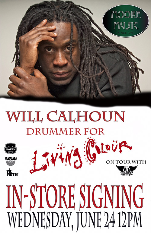Wed 6/24/15 - Evansville, IN @ Ford Center (w/ Aerosmth) : tickets Tue 6/30/15 - Hidalgo, TX @ State Farm Arena (w/ Aerosmith) : tickets Tue 7/7/15 - Santa Barbara, CA @ Santa Barbara Bowl (w/ Aerosmith) : tickets Fri 7/10/15 - Salinas, CA @ California Rodeo Salinas (w/ Aerosmith) : tickets Mon 7/13/15 - Kelowna, BC @ Prospera Place (w/ Aerosmith) : tickets Thu 7/16/15 - Victoria, BC @ Save-On-Foods Memorial Centre (w/ Aerosmith) : tickets Sun 7/19/15 - Fort McMurray, AB @ SMS Stadium (w/ Aerosmith) : tickets Wed 7/22/15 - Cheyenne, WY @ Cheyenne Frontier Days (w/ Aerosmith) : tickets Sat 7/25/15 - Minot, ND @ North Dakota State Fair (w/ Aerosmith) : tickets Tue 7/28/15 - Ridgefield, WA @ Amphitheater Northwest (w/ Aerosmith) : tickets Tue 8/4/15 - Grand Rapids, WI @ Van Andel Arena (w/ Aerosmith) : tickets Fri 8/7/15 - Canton, OH @ Tom Bensen Hall of Fame Stadium (w/ Aerosmith) : tickets ![]() Living Colour Synesthesia Tour 2015 -- US Edition -- Feb 2 to 6, 2015 - Miami to Great Stirrup Cay, Bahamas @ Shiprocked Cruise: ticketsFri 2/6/15 - Ft. Lauderdale, FL @ Culture Room: tickets Sat 2/7/15 - Petersburg, FL @ State Theatre: tickets Sun 2/8/15 - Atlanta, GA @ Masquerade: tickets Mon 2/9/15 - Carrboro, NC @ Cat's Cradle: tickets Tue 2/10/15 - Annapolis, MD @ Rams Head On Stage: tickets Thu 2/12/15 - Leesburg, VA @ Tally Ho Theatre: tickets Fri 2/13/15 - Ridgefield, CT @ Ridgefield Playhouse: tickets Sat 2/14/15 - Brooklyn, NY @ Brooklyn Bowl: tickets Sun 2/15/15 - Londonderry, NH @ Tupelo Music Hall: rescheduled for July 2nd due to the blizzard Thu 7/2/15 - Londonderry, NH @ Tupelo Music Hall: tickets Fri 7/3/15 - Uncasville, CT @ Wolf Den at Mohegan Sun: tickets Sat 7/4/15 - Brooklyn, NY @ International African American Arts Festival (Commodore Barry Park): tickets Thu 7/9/15 - Anaheim, CA @ House Of Blues: tickets Wed 8/5/15 - Cincinnati, OH @ Bogarts: tickets 9/11 to 9/13 - Chicago, IL @ Riot Fest: tickets Sun 12/27/15 - Nashville, TN @ City Winery: tickets Tue 12/29/15 - Cleveland, OH @ Music Box: tickets Wed 12/30/15 - Chicago, IL @ City Winery: tickets for 2 p.m. and 10 p.m. shows ![]() Saturday, June 27, 2015 Will performs at South by South Orange Festival (SOxSO) Will joins a diverse group of musicians in Causing Collisions, a headline concert which features classic rock, blues, pop and jazz — all at the first South by South Orange Festival. 7:30 PM to 9:30 PM at the Main Stage South Orange Performing Arts Center (SOPAC) For more information, tickets, to confirm times, please visit the South by South Orange and South Orange Performing Arts Center Websites. ![]() Wednesday, June 24, 2015 Meet Will and get an autograph at Moore Music, Indiana Visit Moore Music and meet Will Calhoun for an autograph signing session. Please note that this is not a clinic. The event, held from noon to 1:30 PM, is free and open to the public. Moore Music For more information and to confirm times, please visit the Moore Music Website, or telephone (812) 479-9595. ![]() Will with Mike Stern Japan Tour Featuring: -- Mike Stern Japan Tour, June 2015 -- Thu 6/4/15 - Nagoya, Japan @ Nogoya Blue Note: ticketsFri 6/5/15 - Tokyo, Japan @ Cotton Club: tickets Sat 6/6/15 - Tokyo, Japan @ Cotton Club: tickets Sun 6/7/15 - Tokyo, Japan @ Blue Note Tokyo: tickets Mon 6/8/15 - Tokyo, Japan @ Blue Note Tokyo: tickets Check out the Mike Stern Band Website to learn more about the events. Photos and a report (in Japanese) on the Blue Note Japan Website ![]() Friday, May 8, 2015 Will in Blitz Ensemble for free Bronx performance Blitz is a new Bronx-based Latin Jazz ensemble, with its members composed of: