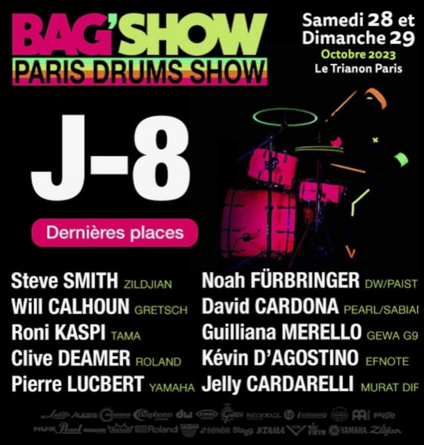 7 PM - Musical Performance 8 PM - Three-Course Dinner 8:30 PM - Live Auction 9 PM - Campagne Toast 10 PM - Event Concludes The Rainbow Room Rockefeller Center 30 Rockfeller Plaza, 65th Floor New York, NY 10112 e-mail: info@ihesgala.org Visit the Jazz and Physices Gala Website for more information and to purchase tickets. ![]() Saturday and Sunday, October 28 and 29, 2023 Will in Paris Drum Show Join Will as he performs at the BAG'SHOW 2023 (Paris Drum Show.) The event is France's largest event and annual gathering of drummers and percussionists. Back for its 20th edition, a single entry ticket allows access to the two-day event. Artist shows will only take place on Sunday the 29th. Schedule Saturday, October 28: 2-7 p.m.