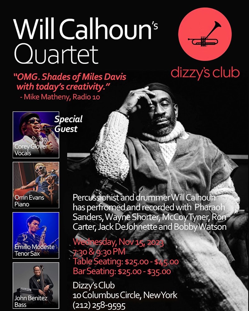 Marcus McLaurine: Bass Neil Clarke: Percussion Will Calhoun: Drums Bryan Carrott: Band Leader and Vibraphone Two shows: 8 and 9:30 PM $30 per set / show Reservations required: call (718) 398-1766 Sistas' Place Check out the event page on the Sistas' Place Website for more information. ![]() Tuesday, September 5, 2023 @ 7pm Will Calhoun Drum Clinic @ Fremantle College in Beaconsfield (Perth), Australia ![]() Location: The Will Calhoun Drum Clinic is a one-of-a-kind event where attendees will have the chance to learn from the best in the industry. Will Calhoun, a widely acclaimed drummer and Grammy Award winner, will take you on a journey through ancestral and futuristic drumming concepts. This clinic is designed to inspire drummers of all skill levels, from beginners to seasoned professionals. Join us for a night of hands-on instruction, live demonstrations, and a Q&A session with Will Calhoun. Don't miss out on this incredible opportunity to elevate your drumming skills and connect with fellow music enthusiasts. What to Expect: